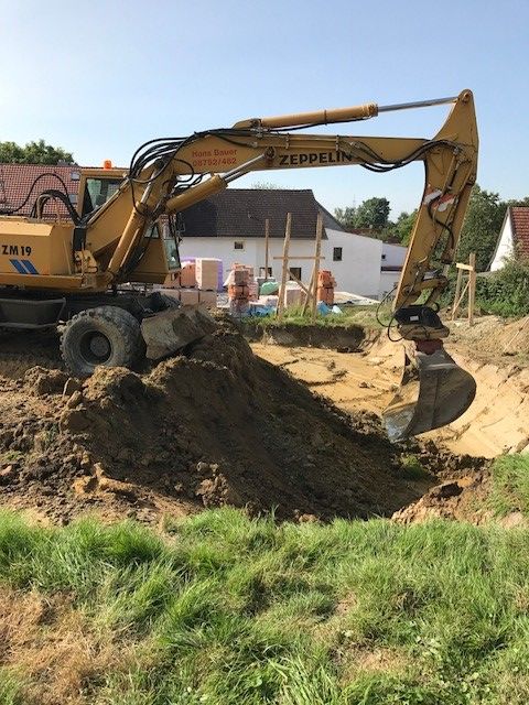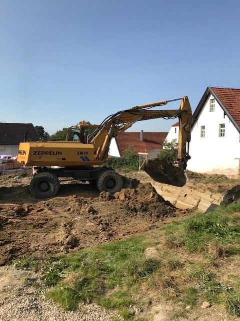 Auch im Bereich Erdbau ist unser Unternehmen breit aufgestellt. Baugrubenaushübe für Neubauten aller Art, Bodenaustauscharbeiten für Keller und Bodenplatten, Planierarbeiten mittels Bagger und Radlader stehen bei uns im Vordergrund.
